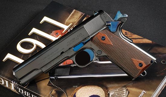 Donated by CYLINDER & SLIDE, INC.: 1911 Anniversary Government Model Pistol. Limited edition of 100, with only 26 pistols available for purchase. Pistol includes: Forged slide with proper recoil spring plug housing contour, ejection port and disconnector notch; 1st generation 1911 sights; Barrel with ball throat and proper external contour; Firing pin stop with flat bottom; Firing pin to proper contour; Frame without finger reliefs and thin trigger guard; Wide spur hammer with correct checkering; Sear with proper contour; Disconnector with proper contour; One piece long trigger with smooth rounded face; Magazine catch with correct checkering; Type one dimpled magazine catch lock; Grip safety with proper tang length; Thumb safety with correct contours and checkering; Slide stop with correctly angled thumb piece and checkering; Flat mainspring housing with lanyard loop with relief cut in bottom of housing; Grip screws with correct head thickness and screwdriver slot width; American black walnut double diamond checkered grips with correct checkering pattern; Recoil spring plug without tab punch; Recoil spring guide with correct contour; Ejector with correct nose cuts; 1 visible base magazine with pinned on base plate, lanyard loop, correct lips, and flat dimpled heat blued follower; Fire Blued: Rear sight, thumb safety, slide stop, one piece trigger, magazine catch, magazine catch lock, pin set and magazine follower; Correct edge and corner breaks on slide; Correct polish; Carbona blueing; All inspectors markings in correct font applied to frame and slide; Frame marked US Property in large type face; Serial number for Army 1-100; Navy 501-600; Marine Corps 3501-3600; Cylinder & Slide Fremont NE on frame manufacturers mark; Slide roll marked with all roll marks in correct font with manufacturer changed to Cylinder & Slide Fremont NE; Slide roll marked on left rear with Cylinder & Slide Logo Correct two piece brown craft paper covered box; and Waxed craft paper pistol wrapper. Dallas Safari Club thanks Cylinder & Slide, Inc. for this 100% donation. John, 402-721-4277, 402-720-2357, Fax 402-721-0263, 245 East 4th St., Fremont, NE 68025, john@cylinder-slide.com, www.cylinder-slide.com. BOOTH #1133