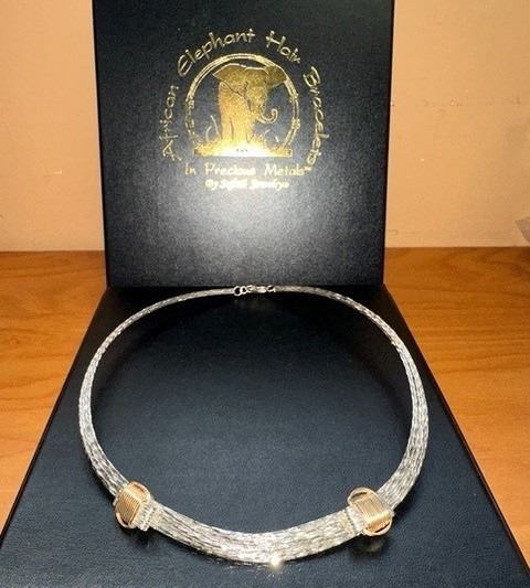 Crafted with utmost precision, this necklace features strands of 16-gauge round diamond cut sterling silver wire. The intricate knots are adorned with contrasting 14k gold fill, adding a touch of elegance to the overall design. What sets this necklace apart from our other products is its uniquely round wire that's diamond-cut to capture and reflect light from all angles. When you wear it, the necklace sparkles like a thousand diamonds and when sunlight hits it, it creates an enchanting aura that's hard to ignore. Each piece of African Elephant Hair Bracelet - Safari Jewelry piece is handmade and hand signed - look for the maker's mark to ensure original quality. David Anderson, 805-685-5955, 805-452-5792, d.sb@verizon.net, www.SafariJewelry.Com, BOOTH #1524.