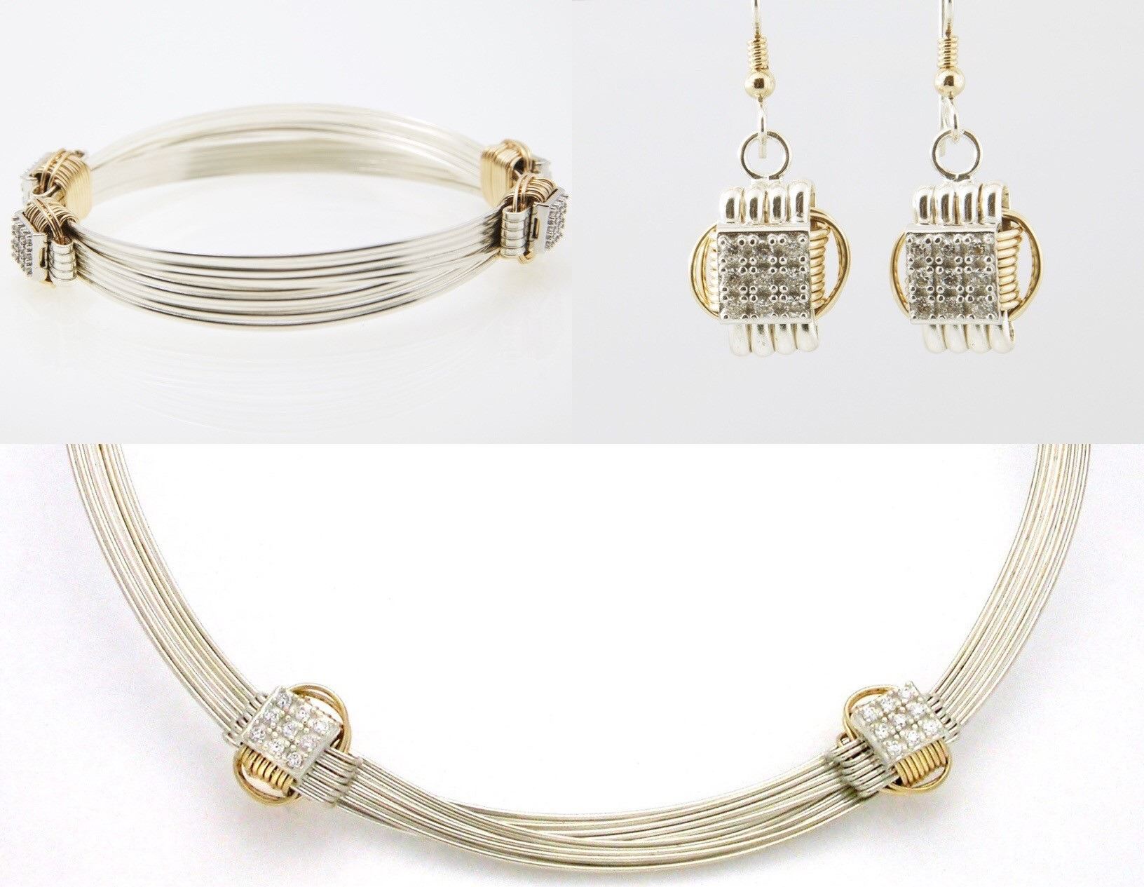 The body of our CZ two tone necklace is made up of multiple strands of 16 gauge sterling silver wire. The knots are made of contrasting 14k gold fill and are designed to slide making the necklace adjustable. Sparkles have been added to the knots with a pave of CZ (cubic zirconia) stones. CZ's, a man-made gemstone that closely resembles diamonds, contribute to a delightful balance between design and price point. It comes with a matching lightweight CZ bracelet and small CZ dangle earrings. Each piece of African Elephant Hair Bracelet - Safari Jewelry piece is handmade and hand signed...look for the maker's mark to ensure original quality! David Anderson, 805-685-5955, 805-452-5792, d.sb@verizon.net, www.SafariJewelry.Com, BOOTH #1524.