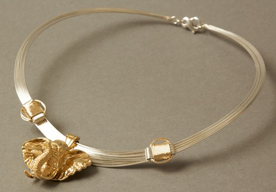 The body of our two-tone necklace is made up of multiple strands of 16 gauge sterling silver wire. The knots are made of contrasting 14k gold fill and are designed to slide making the necklace adjustable. It comes with our most popular pendant. This gold elephant head has a solid .925 sterling silver base metal with a 14k gold vermeil overlay. Gold vermeil is much higher quality than traditional gold plated jewelry and makes a wonderful alternative to solid 14k gold. Each piece of African Elephant Hair Bracelet - Safari Jewelry piece is handmade and hand signed...look for the maker's mark to ensure original quality! David Anderson, 805-685-5955, 805-452-5792, d.sb@verizon.net, www.SafariJewelry.Com, BOOTH #1524.