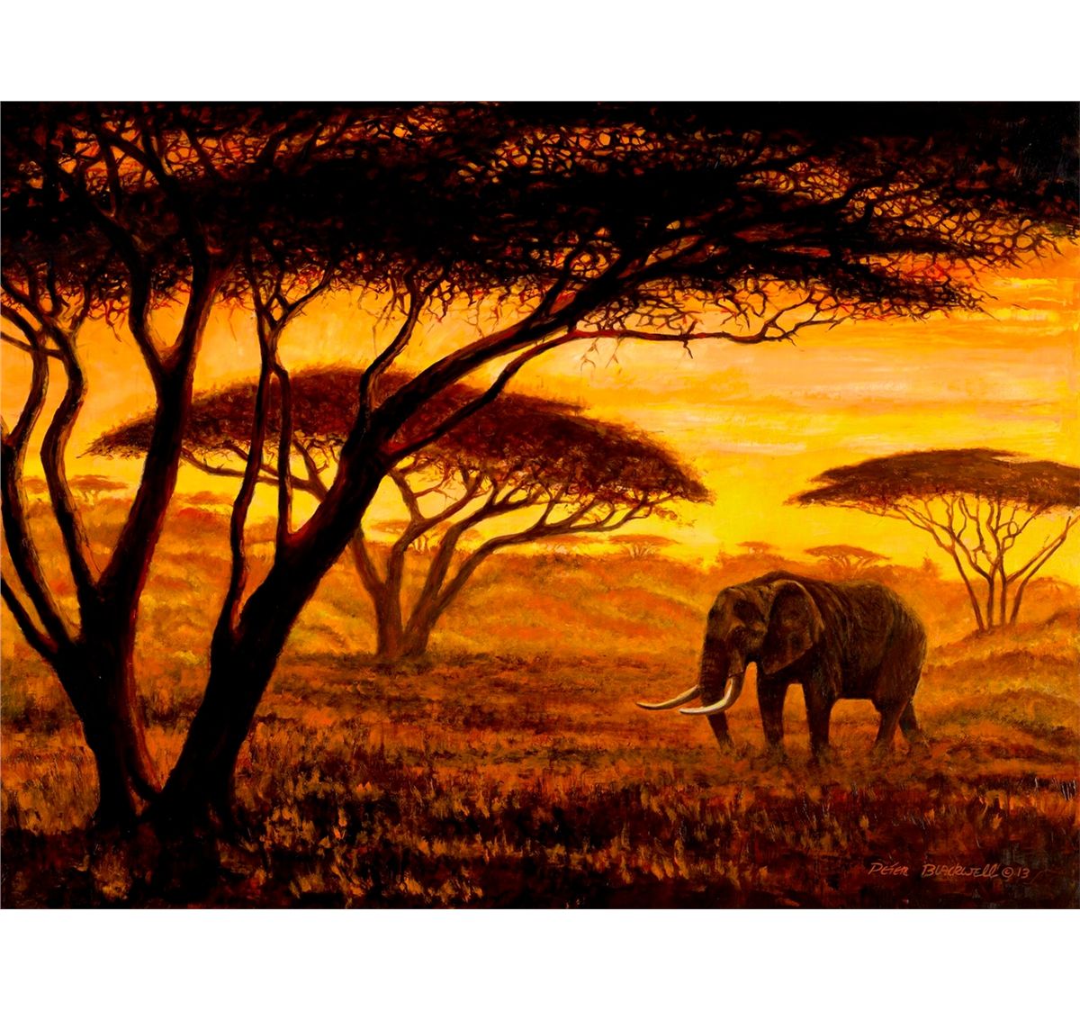 Generously donated by BLACKWELL WILDLIFE ART: "Acacia's Company" - framed original oil on board by Peter Blackwell - measures 18"x 24". This piece is rich with the golden, amber hues of the African landscape. Not only do we at Blackwell Wildlife Art Gallery love the experience of the African bush, but our livelihood and that of many people are intricately meshed with, and dependent on, the survival of our natural habitats and the wild animals that have existed on Africa's plains since time immemorial. Therefore, the Blackwell Wildlife Art Gallery has designated 50% of the proceeds from the sale of this painting to directly benefit the Big Life Foundation for anti-poaching projects. Peter Blackwell, 512-909-8230, C/O 8539 Adirondack Trail, Austin, TX 78959, info@peterblackwellwildlifeartist.com, www.peterblackwellwildlifeartist.com. Booth #2655