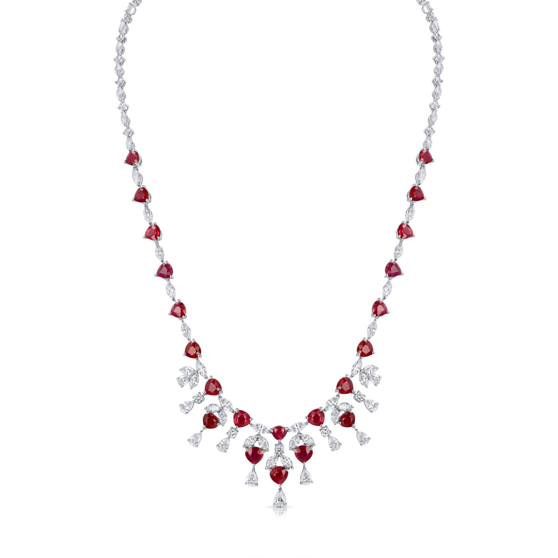 BARANOF JEWELERS: Natural Burmese Pigeon Blood Ruby and Diamond Necklace Set in 18K White Gold