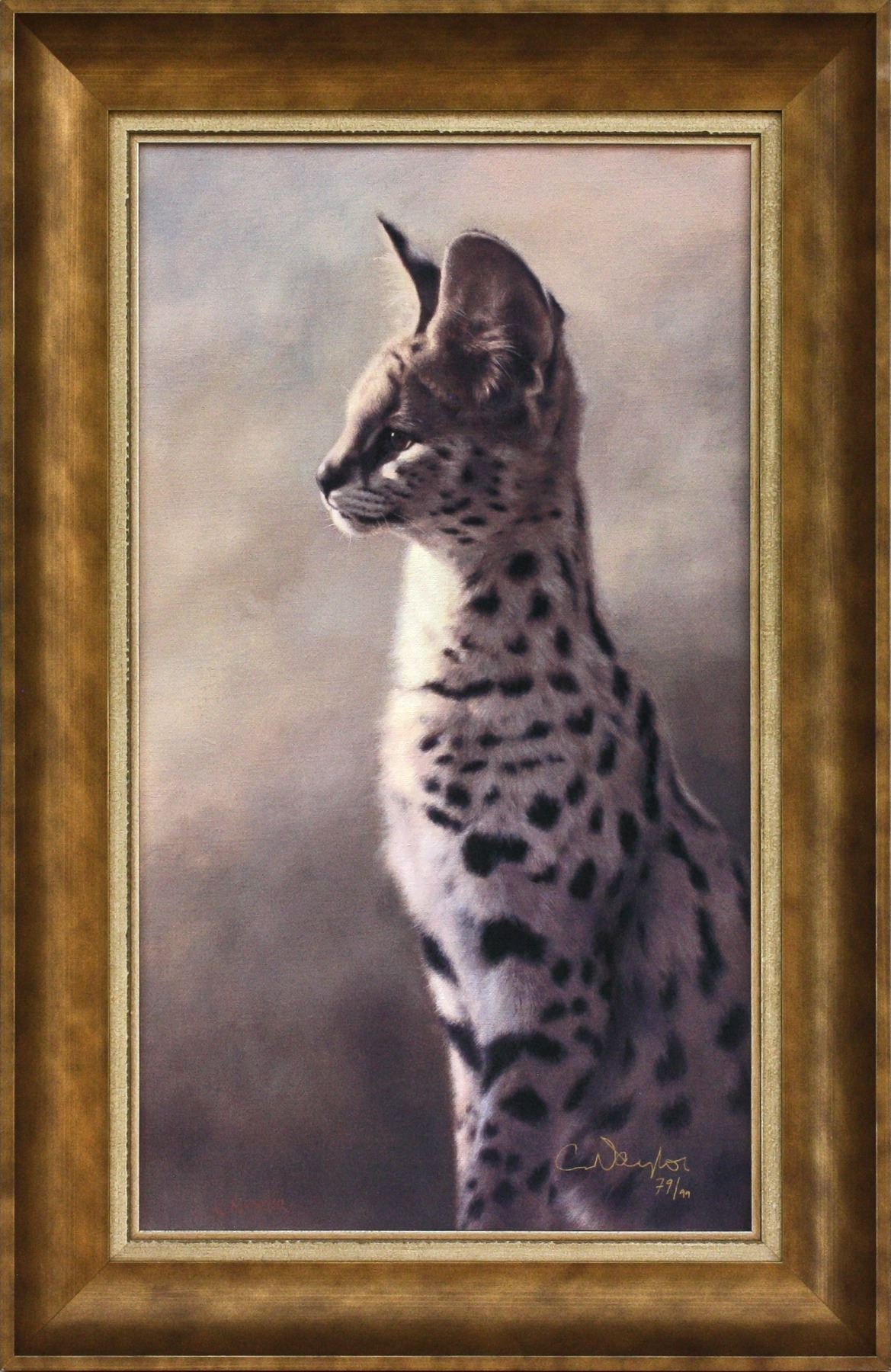 IN-ROOM ONLY BIDDING-EXCLUSIVE TO ATTENDEES. "Serval Sentry" - Stunning and beautifully framed limited edition #79/99 giclee print on canvas of a serval by British wildlife artist, Claire Naylor. Measures 32"x22" framed. DALLAS SAFARI CLUB THANKS CALL OF AFRICA, INC. FOR THIS 100% DONATION. Mel Lenet / Ross Parker, 954-767-8737, 954-445-8252, Fax 954-524-7494, 920 NE 13th Street, Ft. Lauderdale, FL 33304, mel@nativevisions.com, CallOfAfrica.Com, BOOTH #3743.