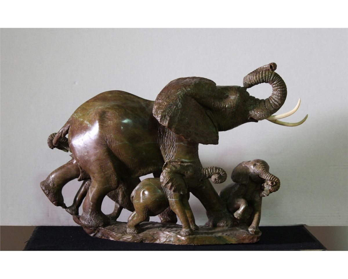 CALL OF AFRICA GALLERIES is pleased to donate this beautifully sculpted original verdite work of a family of four elephants by renowned Zimbabwean wildlife artist, James Tandi, in rare verdite. Measures 20"H x 11"W x 27"L. Dallas Safari Club thanks Call of Africa Galleries for this 100% donation. Ross Parker, 954-767-8737, Fax 954-524-7494, 920 NE 13th Street, Fort Lauderdale, FL 33304, callofafricawarehouse@yahoo.com, www.callofafrica.com. BOOTH #2938