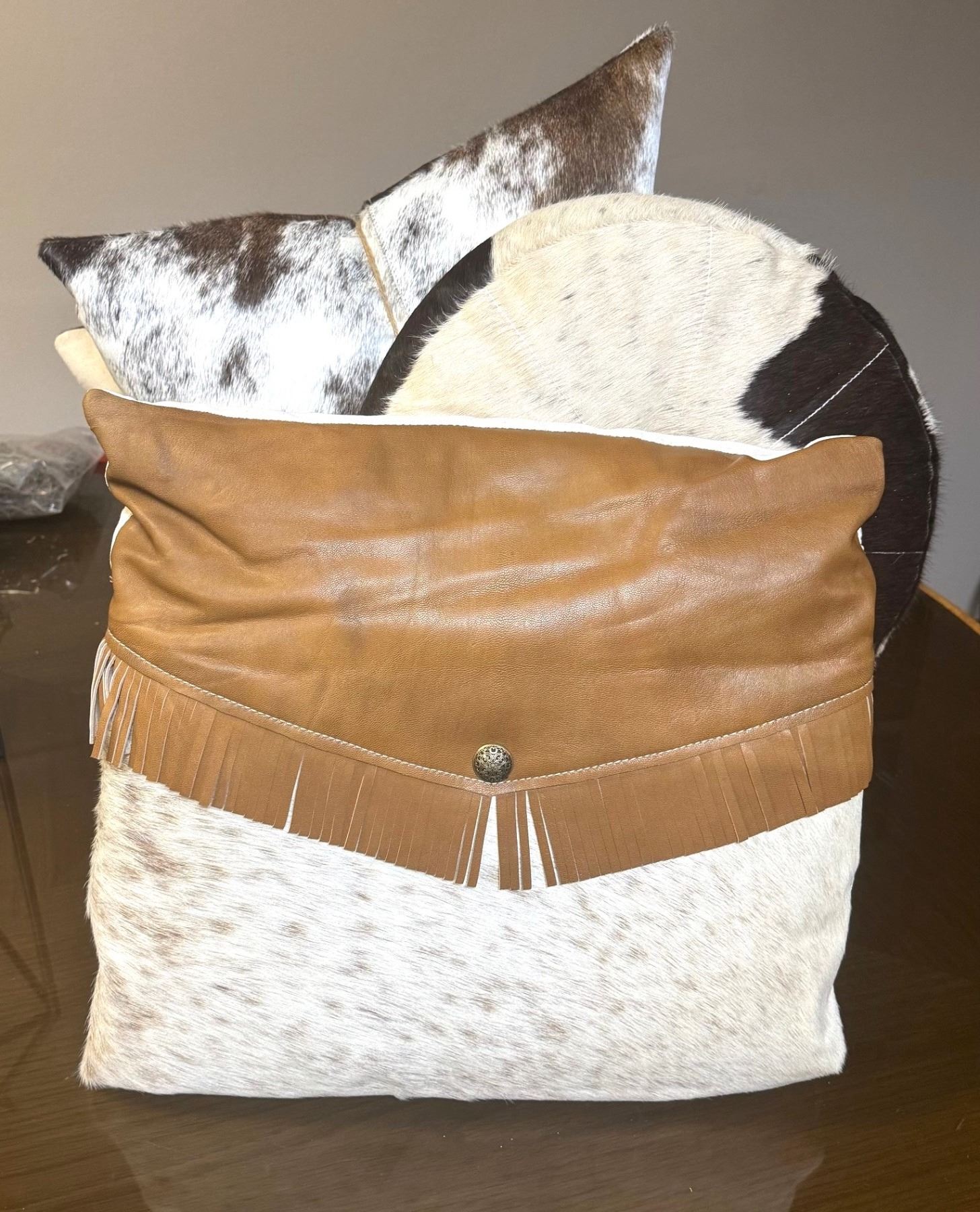 This fabulous set of cowhide throw pillows will add comfort and style to any decor. Set includes 2x square pillows with cowhide/leatherette fringe fronts and canvas backings, 1x square full cowhide pillow and 1x round full cowhide bolster pillow. DALLAS SAFARI CLUB THANKS GRACE PULK FOR THIS 100% DONATION. gracepulk63@gmail.com.