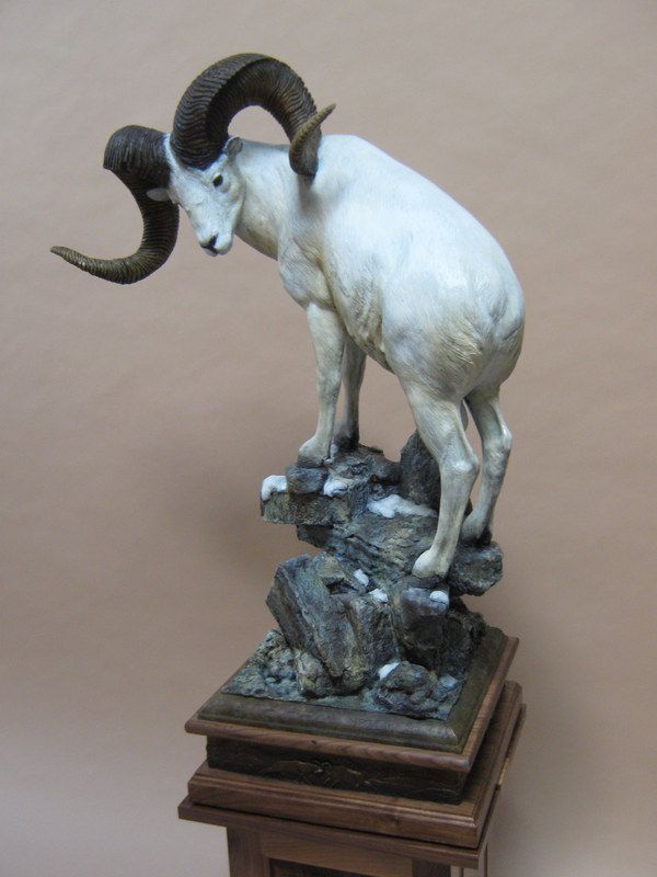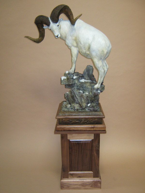 Donated by SLEEPING GIANT ARTISTRY: "Ivory King" - Dahl Sheep sculpture by Sam Terakedis. This bronze is part of The Grand Slam Series. This limited edition size is 20 bronze, with a life-like patina using the lost wax method. This piece comes with a custom black walnut pedestal for display and measures 38 3/4"H x 28"L x 19"W. Dallas Safari Club thanks Sleeping Giant Artistry for this 100% donation. Sam Anton Terakedis, 406-333-9091, 406-223-9993, 4 Paradise Ranch Road, Livingston, MT 59047, kterakedis@aol.com, www.terakedis.com. BOOTH #4247