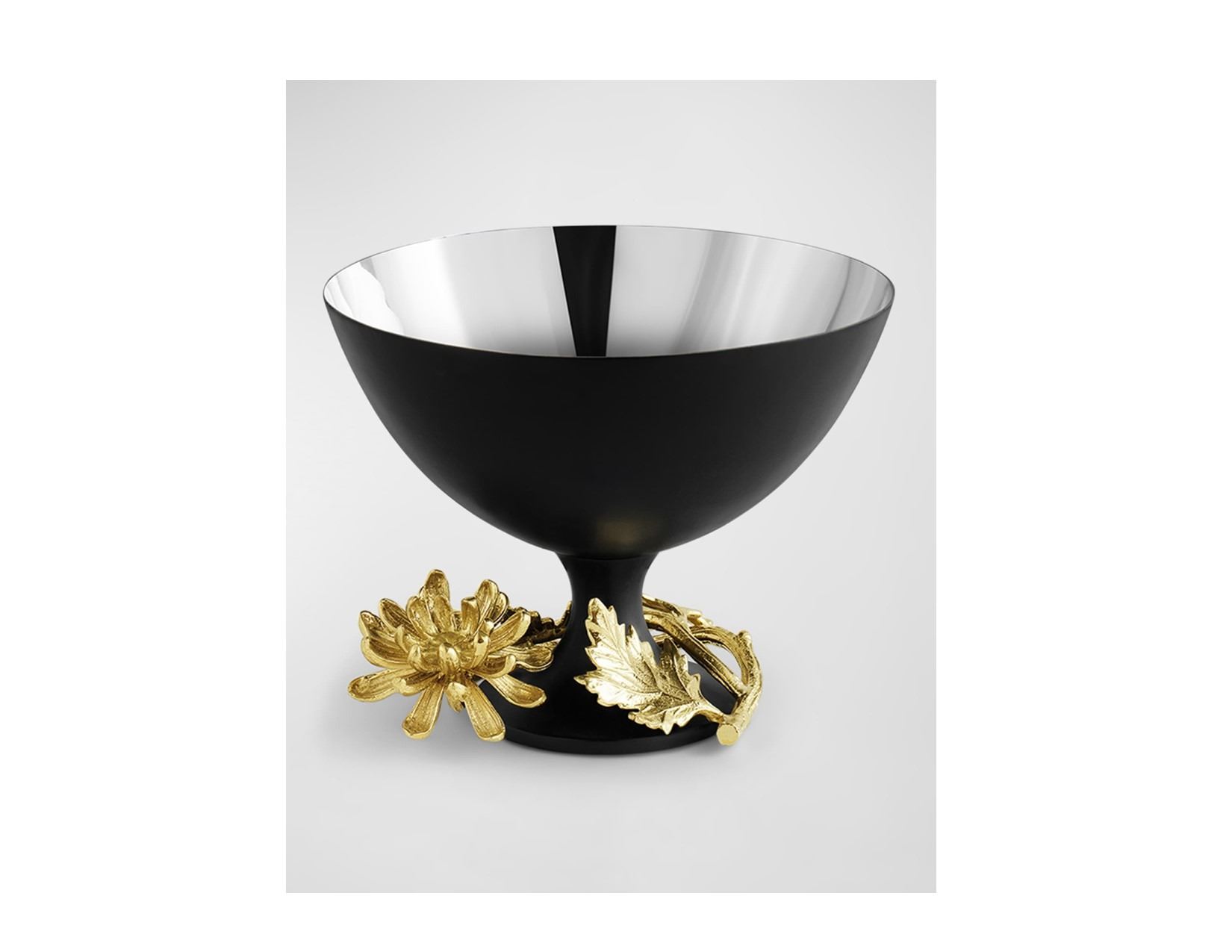 The Dahlia collection captures a sense of romance, intricacy and opulence. The beautiful contrast of the radiant golden bloom design against black granite and enameled gold plated stainless steel, evokes a mysterious sensuality. This lovely set includes a 17x10" cheese board and knife crafted of brass, black kadappa and stainless steel. Also included is a small Dahlia serving bowl crafted of stainless steel and brass trim measuring 5"Hx6.2"D. DALLAS SAFARI CLUB THANKS JOHN & PAM PATTERSON FOR THIS 100% DONATION. John & Pam Patterson, pnpatterson3@yahoo.com.