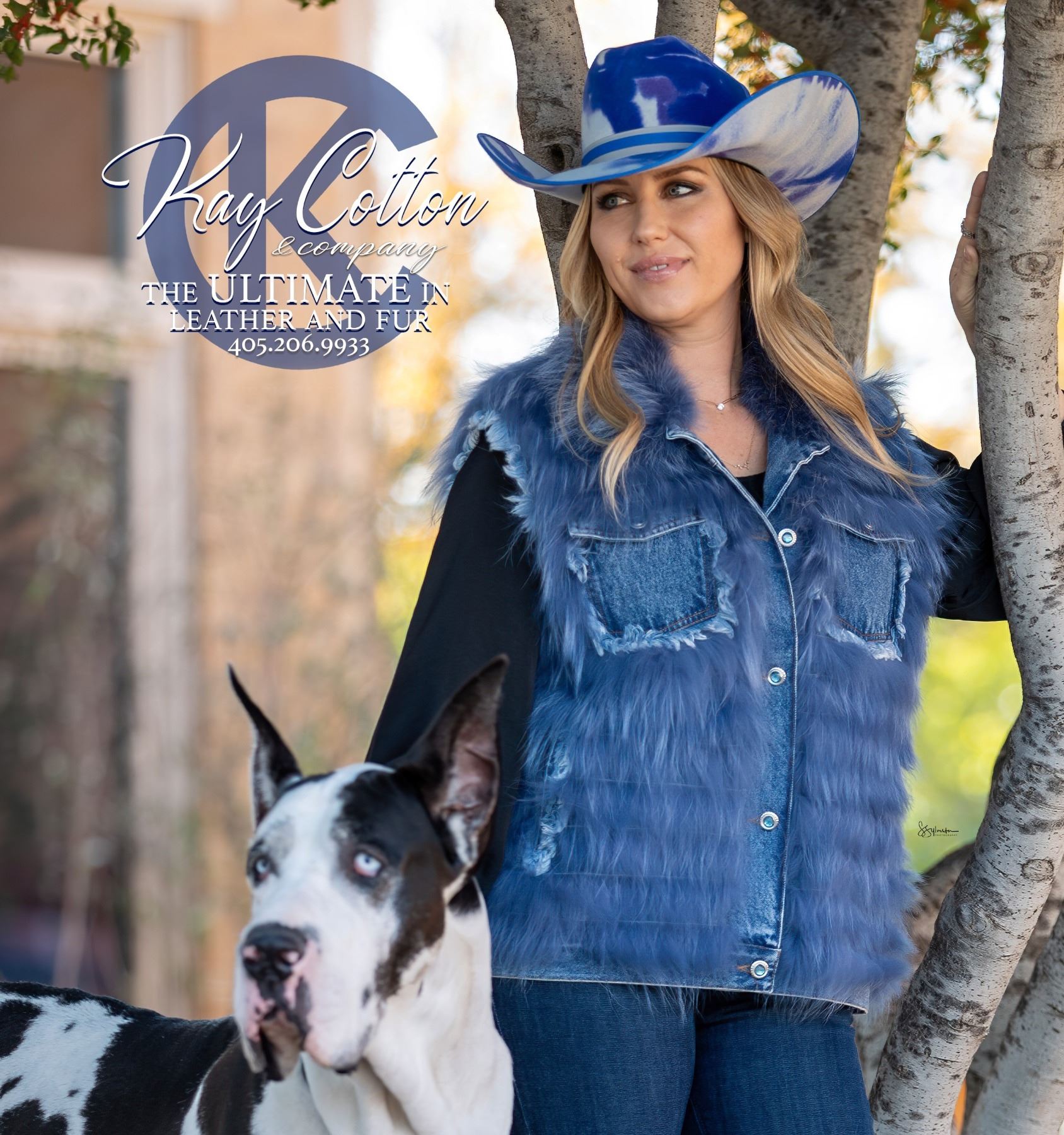 Regretfully, Kay Cotton and Company will not be able to attend the 2026 DSC convention, but we hope one lucky lady will enjoy this lovely fur and denim vest with dyed Finnish raccoon! Thanks for all the support over the years through your purchases and we look forward to being back at the show in 2027. Size extra-small but runs larger (medium) and exchangable through the donor. DALLAS SAFARI CLUB THANKS KAY COTTON & COMPANY FOR THIS 100% DONATION. Kay Cotton, 405-206-9933, kaycottonandcompany@hotmail.com, www.KayCottonAndCompany.Com.