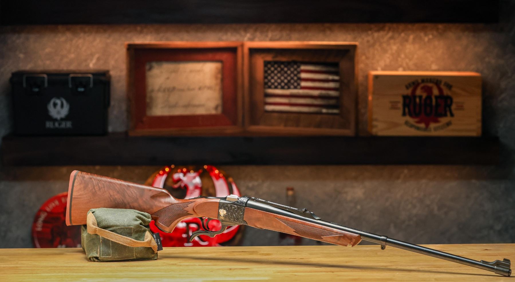 Designed as a tribute to tradition and elite hunting craftsmanship, this Dallas Safari Club Ruger No.1 in .275 Rigby is a single-shot rifle built to impress. Its receiver features meticulous hand-engraving with elegant gold and sterling silver inlays, showcasing artistry rarely seen on a hunting rifle. The high-grade walnut stock and forend are beautifully configured and hand-finished, giving the rifle both classic presence and heirloom character. In collaboration with Lipsey's, there were only four made exclusively for DSC. This Ruger No.1 stands as a collector's piece with the soul of a field-ready hunting rifle. Christie Selle, christie@biggame.org.