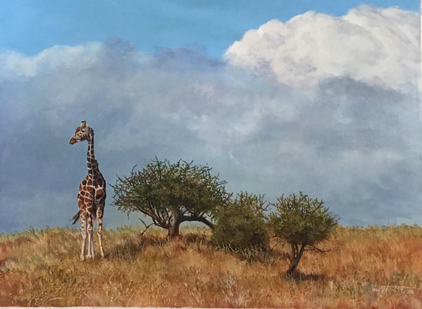 "Distant Thunder" - Original artwork by Jan Martin McGuire, artist and naturalist, is a longtime supporter of DSC - measures 18"x24". Jan and her husband James Hines are Life Members, long-time DSC exhibitor and past DSC "Artist of the Year". Jan is an ardent believer that an artist has to experience what they paint and, to that end, she and James travel extensively all over North America, Central America and Africa - where they lead annual photographic and natural history trips to Kenya and Tanzania. DALLAS SAFARI CLUB THANKS MCGUIRE & HINES STUDIOS FOR THIS 100% DONATION. Jan Martin McGuire, mcGuireandHines@gmail.com, Booth #2919.