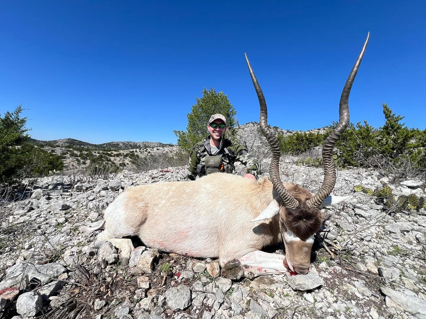 3-day/2-night 1x1 exotic species hunt for one hunter and one non-hunter in Uvalde, Texas - includes $7,500 trophy fee credit towards species of winner's choosing. Method of take is rifle or bow. This hunt is available year-round in 2025 or 2026 and may be upgraded to include additional species exceeding the credit at current price list. Additional hunters are welcome at $1,500; non-hunters are welcome at $800. Transportation during the hunt is mostly by vehicle with hunting done by spot & stalk. Included: field prep, transportation to taxidermist, luxury cabin accommodations, Wi-Fi, full bar and all meals. Not included: license/permit at $48 and gratuities. Arrival/departure is at the ranch; closest airport is in San Antonio. DSC references include Russell, Mary Edith & Kaylee Stacy, Barret Simpson and Royce Farris. DALLAS SAFARI CLUB THANKS OX HUNTING RANCH FOR THIS 100% DONATION. Jason Mollitor, 830-275-4962, 1946 Private Road, Uvalde, TX 78801, angela@oxhuntingranch.com, OxHuntingRanch.Com, BOOTH #2223.