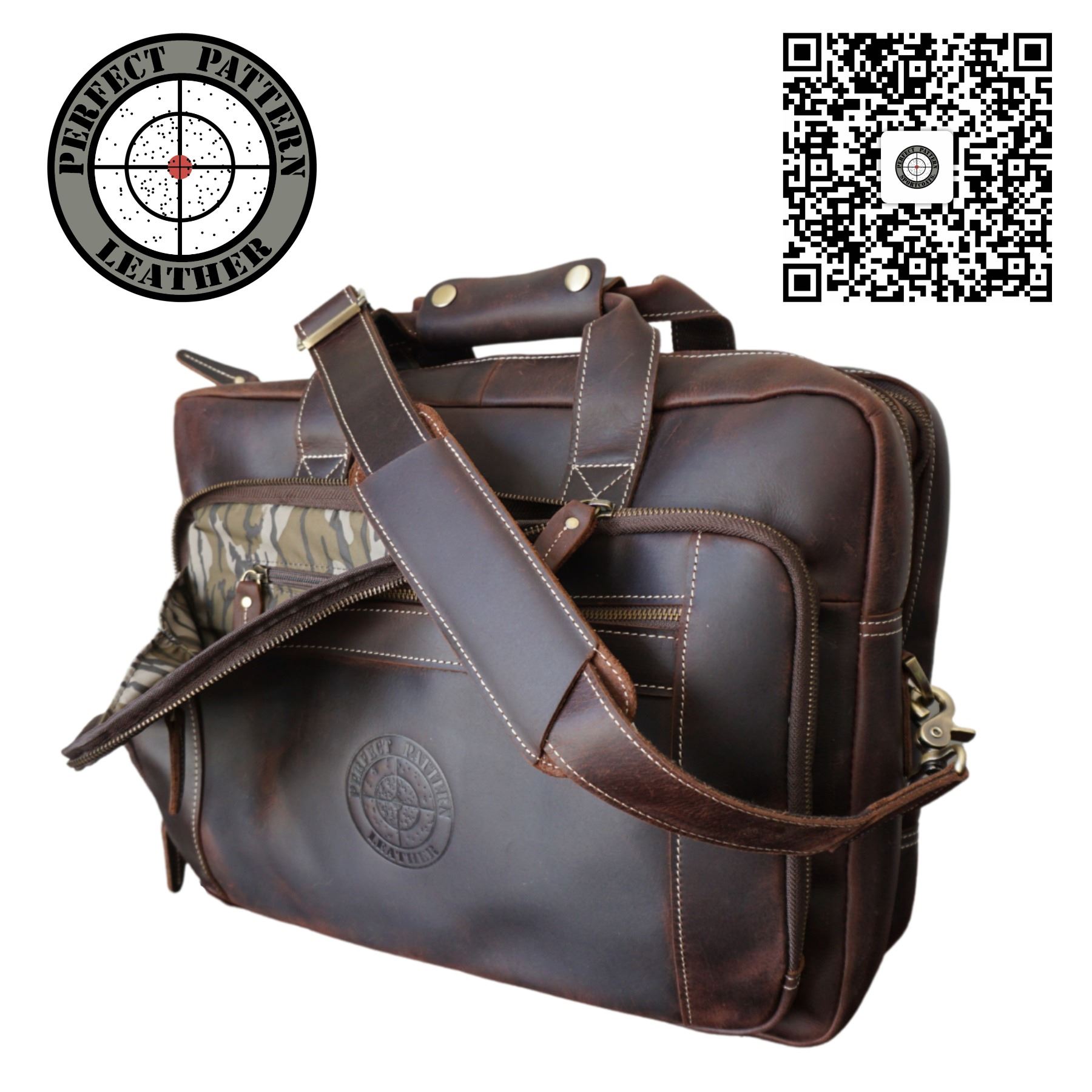 Indulge in the superior craftsmanship and sophistication of the "Greenhead" briefcase. Immaculately designed, it features a Mossy Oak Original Bottomland Camo Liner and an official embossed Perfect Pattern Leather Logo. The highest quality full grain buffalo leather will develop a rich, well-earned patina over time, while heavy duty hardware and zippers ensure long-lasting construction for everyday use. Comes with a strap to easily attach to your suitcase. With ample space for a 17" laptop and dimensions of 17"x12"x6", this 4 lb. masterpiece exudes exclusivity and elegance. DALLAS SAFARI CLUB THANKS PERFECT PATTERN SPORTSCOATS FOR THIS 100% DONATION. Austyn Swisher, 803-373-2800, sales@perfect-pattern.com, www.Perfect-Pattern.Com, BOOTH #2357.