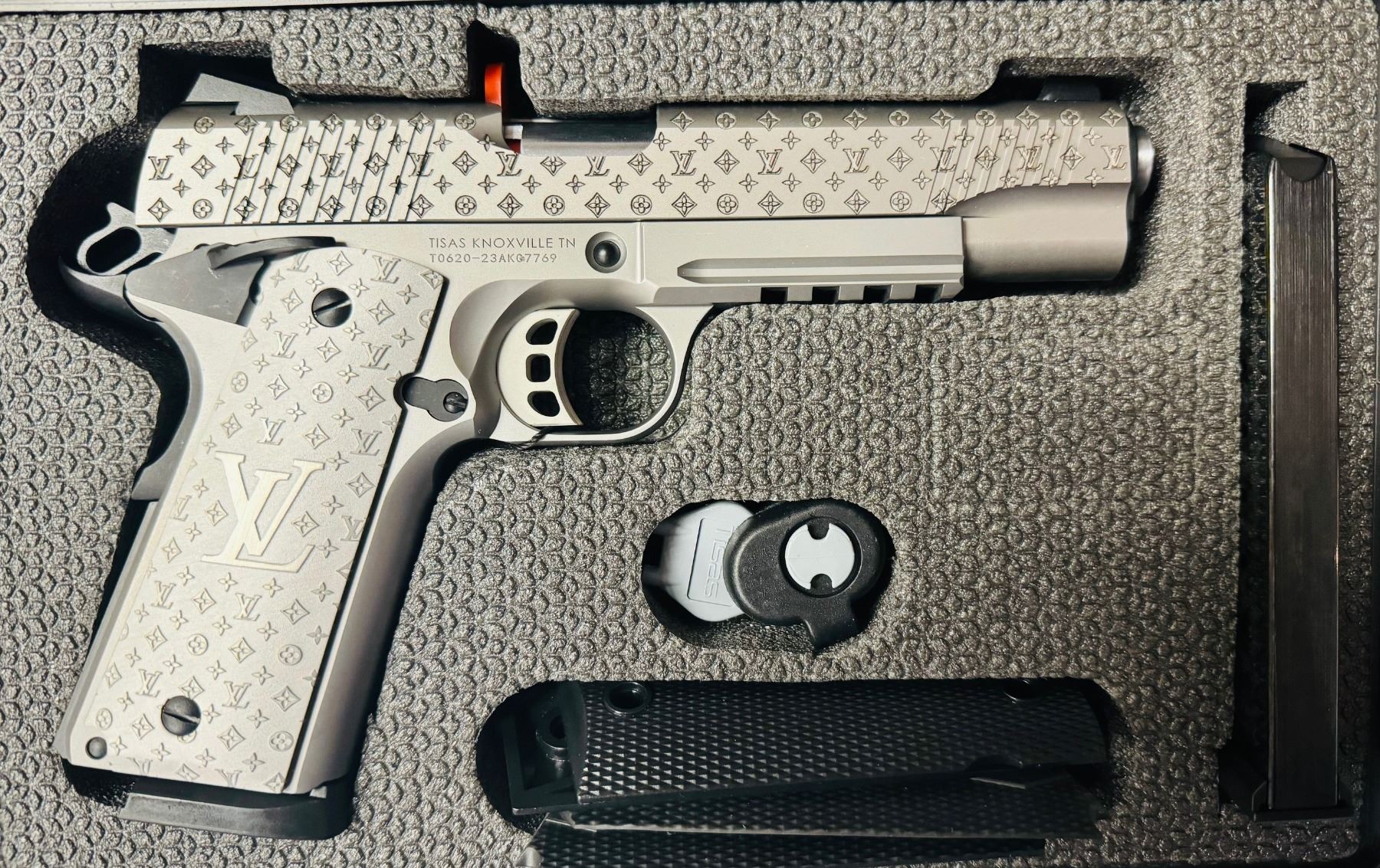 Ladies! Imagine showing up at the shooting range with a fantastic Louis Vuitton Tisas 1911 .45ACP pistol! Stylish and fierce, this beauty packs a punch! Pistol features a Cerakote finish, full-size frame, stainless steel commander length slide, 4.25" cold hammer forged barrel, Colt® 70 Series internals and Novak-style 3-dot sights. Comes unfired with two magazines and hard case. NOTE: Check with state/local FFL restrictions before bidding. DALLAS SAFARI CLUB THANKS RUSSELL & MARY EDITH STACY FOR THIS 100% DONATION. Russell & Mary Edith Stacy, maryedithstacy@icloud.com.
