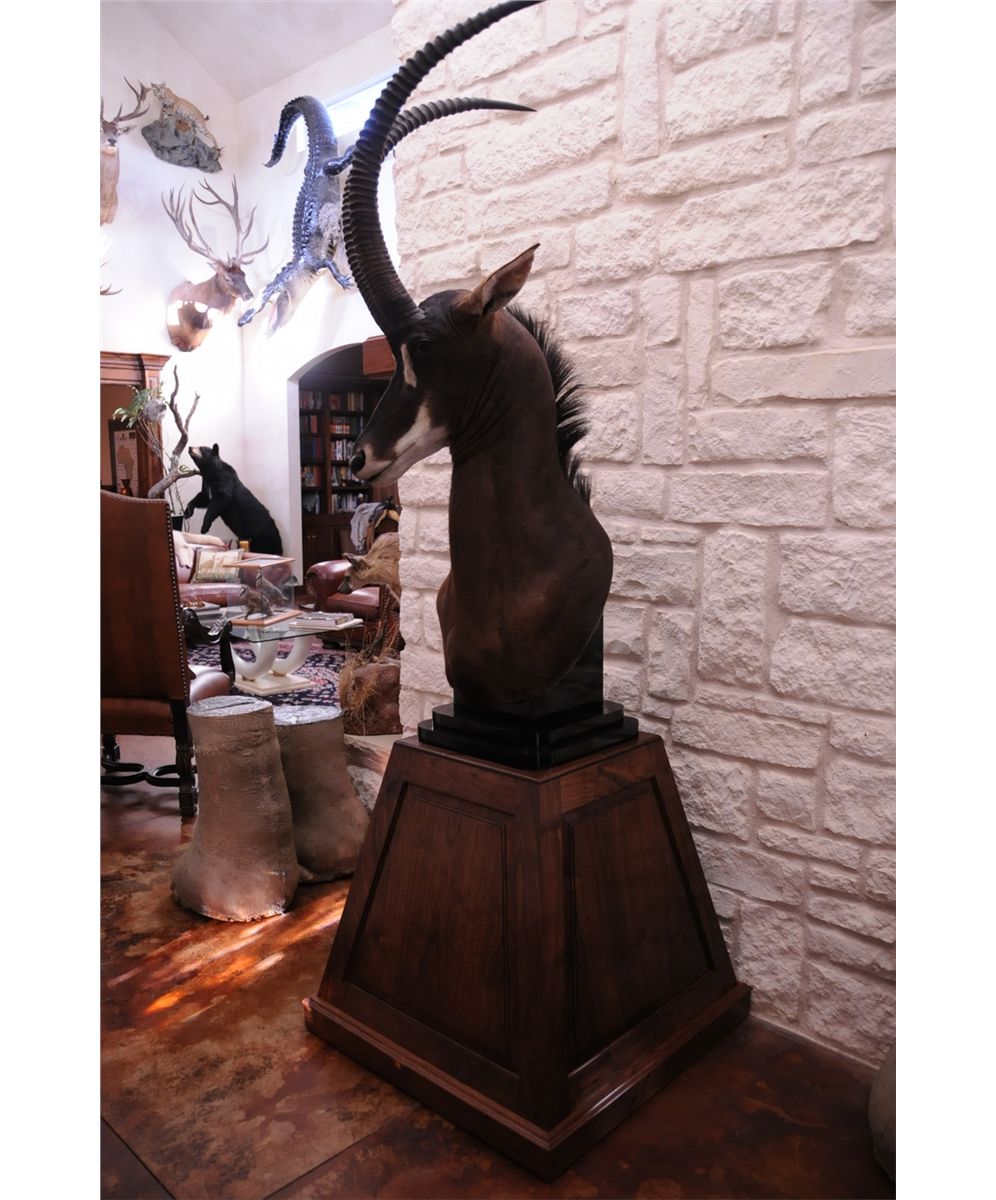JULIAN & SONS has donated a beautiful solid walnut pyramidal shaped pedestal base for displaying either taxidermy or artwork. The piece reflects the craftsmanship and style that clients have grown to appreciate from Julian & Sons. The pedestal measures 32" x 32" x 30", with the top at 18"x18" with a leather insert. Four ball bearing casters allow for ease of movement. The pedestal is finished with a hand rubbed Danish oil finish. This handcrafted pedestal would be a fine addition to any trophy room or office. Dallas Safari Club thanks Julian & Sons for this 100% donation. Tom Julian, 501-362-7933, 501-206-5780, Fax 501-362-7728, 1723 Cross St., Heber Springs, AR 72543, info@julianandsons.com, www.julianandsons.com. BOOTH #3144