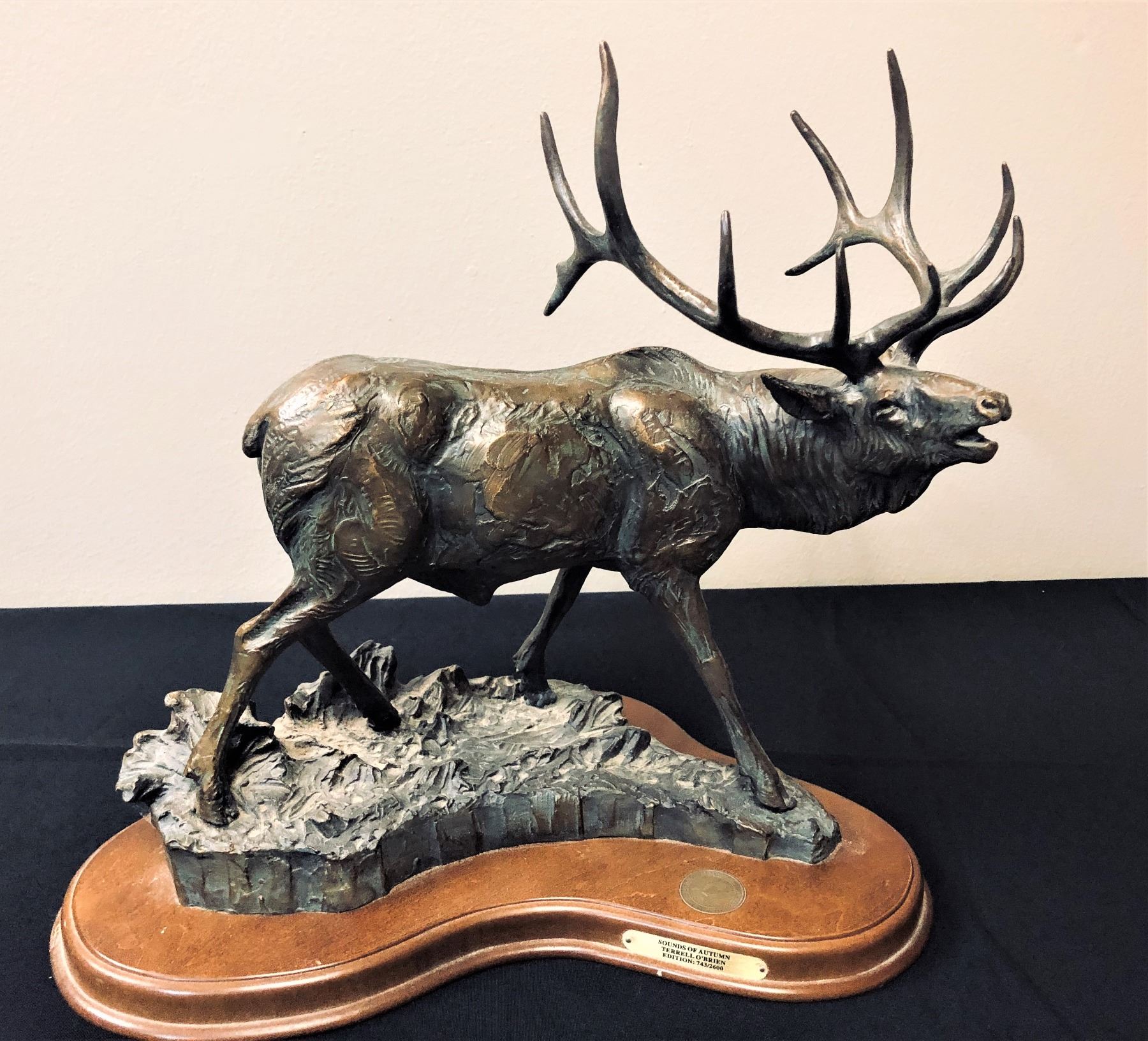 "Sound of Autumn" - Limited edition bronze artwork by cowboy artist Terrell O'Brien, measures 15.5"x16.75". Bronze is donated in honor of her late husband, Paul Strief. DALLAS SAFARI CLUB THANKS KATIE STRIEF FOR THIS 100% DONATION.